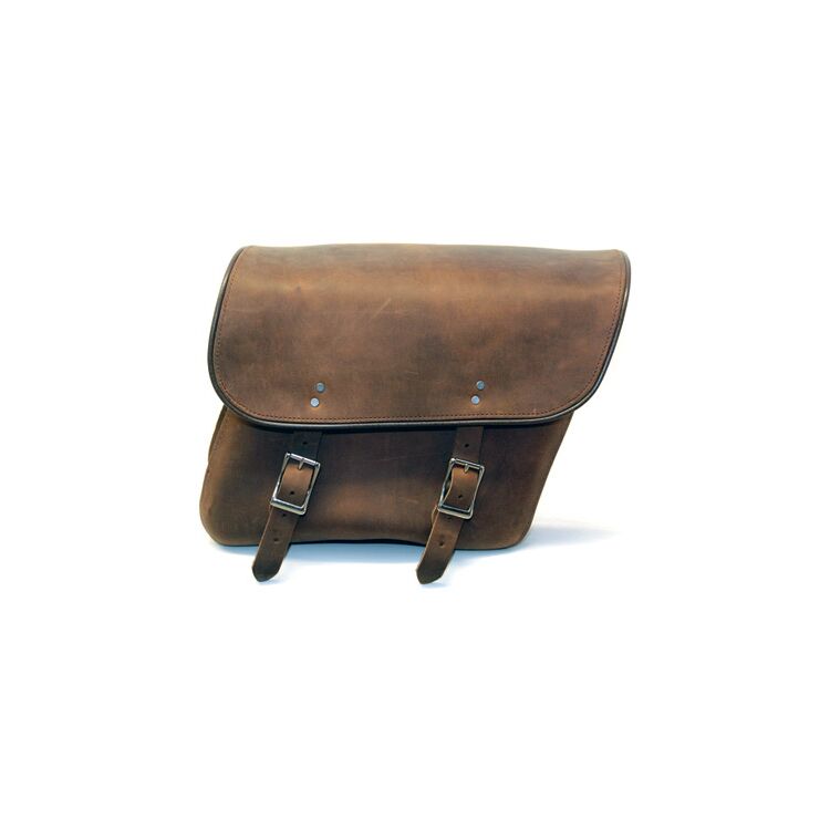 - Slight angle saddlebag with the retro old school look made in distressed brown leather